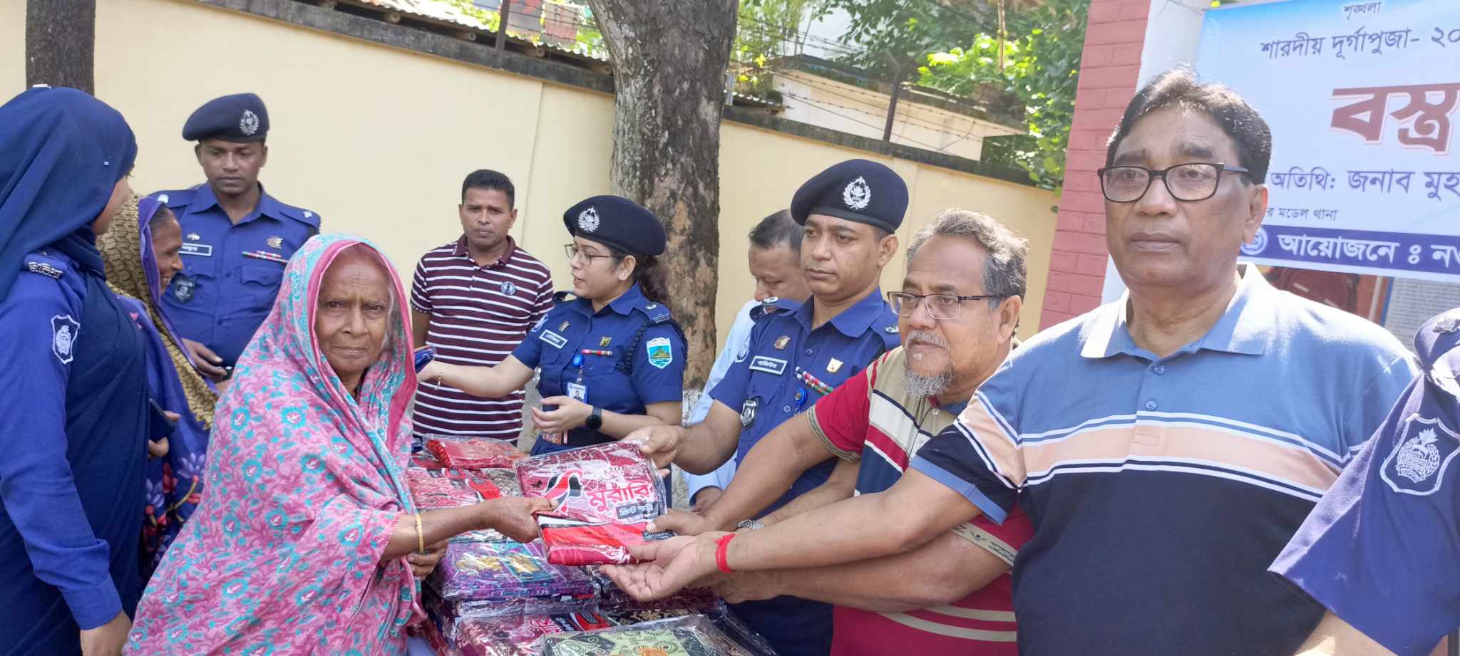 শারদীয় দূর্গাৎসব উপলক্ষে নওগাঁ সদর থানা পুলিশের উদ্যোগে দরিদ্র মানুষের মাঝে উপহার সামগ্রী বিতরণ