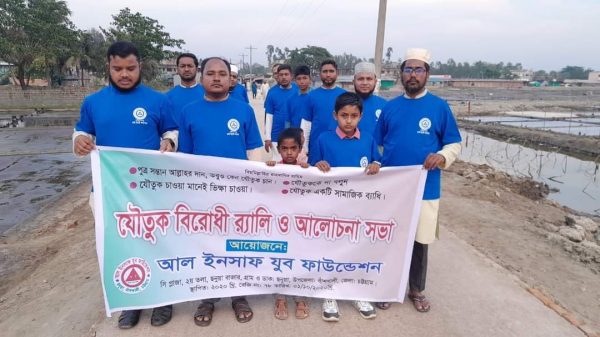 আল ইনসাফ যুব ফাউন্ডেশন কর্তৃক যৌতুক বিরোধী র্যালি অনুষ্ঠিত