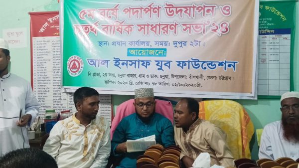 আল ইনসাফ যুব ফাউন্ডেশনের ঈদ পুনর্মিলনী ৫ম বর্ষে পদার্পণ উদযাপন ও বার্ষিক সাধারণ সভা-২৪ অনুষ্ঠিত