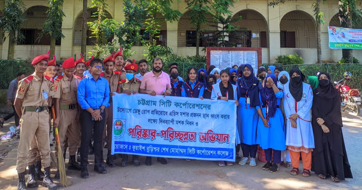 চট্টগ্রাম সিটি কর্পোরেশনের উদ্যোগে ডেঙ্গু প্রতিরোধে এডিস মশার প্রজনন স্থান ধ্বংস করার লক্ষ্যে নিয়মিত কর্মসূচীর অংশ হিসেবে অদ্য ০৭/১১/২৪ তারিখ রোজ বৃহস্পতিবার কুয়াইশ বুড়িশ্চর শেখ মোহাম্মদ সিটি কর্পোরেশন কলেজে পরিস্কার-পরিচ্ছন্নতা অভিযান কর্মসূচী পালিত হয়েছে।