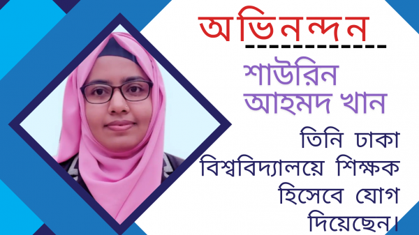 শাউরিন আহমেদ খান ঢাকা বিশ্ববিদ্যালয় এ শিক্ষক হিসেবে যোগদান